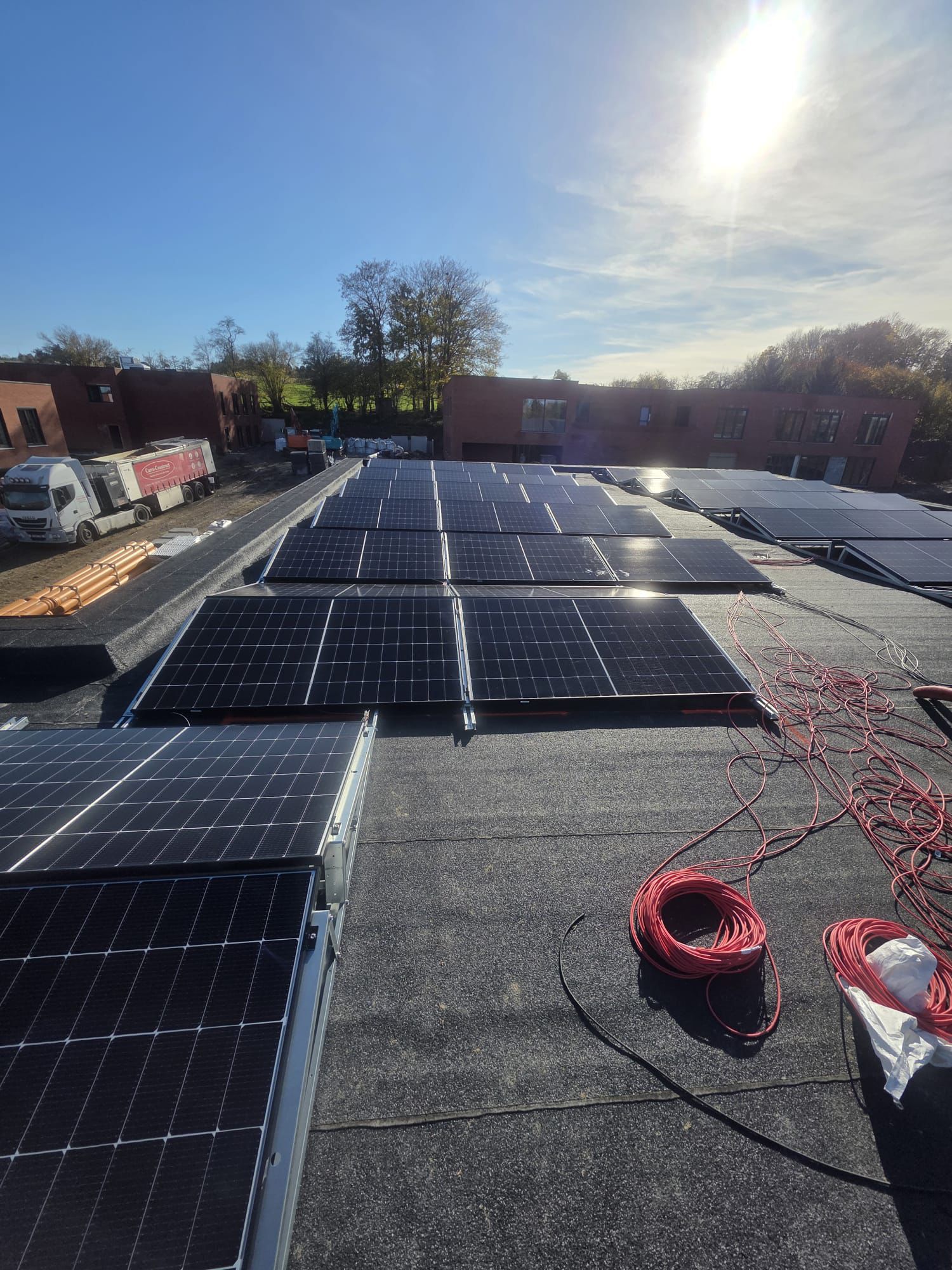 - Installation de 200 kWp de panneaux solaires avec onduleurs repartis su 3 bâtiments